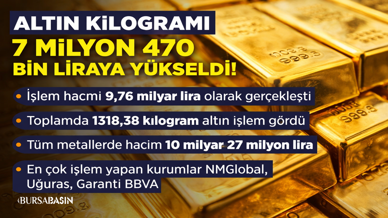 Gün sonunda fiyat, önceki güne göre %0,6 artışla 7 milyon 470 bin liraya yükseldi. Dün kilogram fiyatı 7 milyon 425 bin lira seviyesinde kapanmıştı.