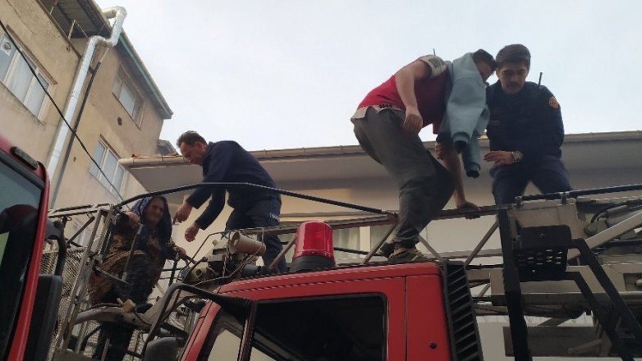 Bursa'da 4 katlı bir apartmanda yangın çıktı. Alevler içinde kalan 3'ü çocuk 10 kişi itfaiye ekiplerince sepetli vinç ile kurtarıldı.