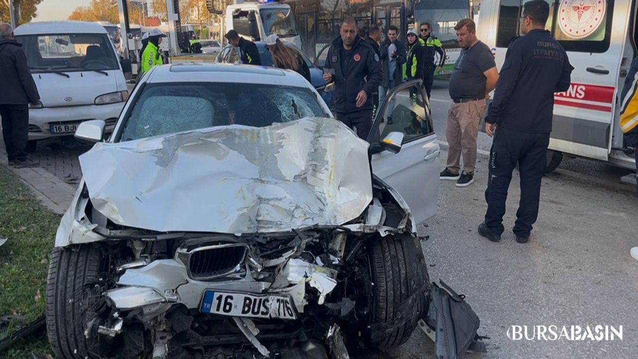 Mudanya Yolu üzerinde seyreden araçlar, önce belediye otobüsüne çarptı; çarpmanın etkisiyle savrulan otomobiller daha sonra kaldırıma çıkarak durabildi.