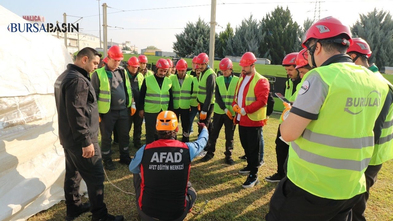 Bursa Büyükşehir Belediyesi, olası afet ve acil durumlara karşı tüm birimlerinde hazırlıklarını aralıksız sürdürüyor. Bu kapsamda, belediye iştiraki BURULAŞ personeline, AFAD koordinasyonunda çadır kurma eğitimi düzenlendi.