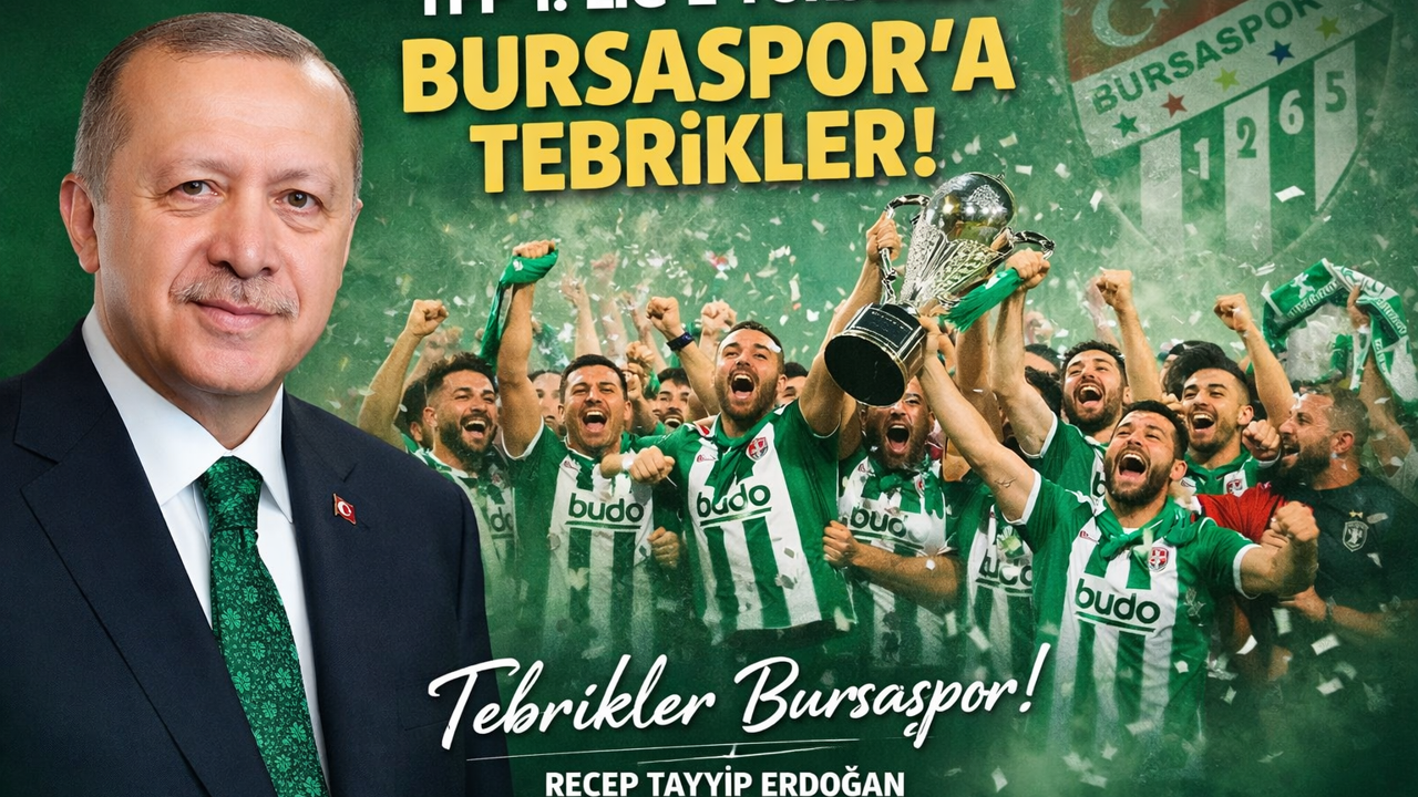 Bursaspor’un şampiyonluğu ve TFF 1. Lig’e yükselmesi, Türkiye gündeminde de yankı buldu. Cumhurbaşkanı Recep Tayyip Erdoğan, yayımladığı mesajla yeşil-beyazlı camiayı tebrik etti.