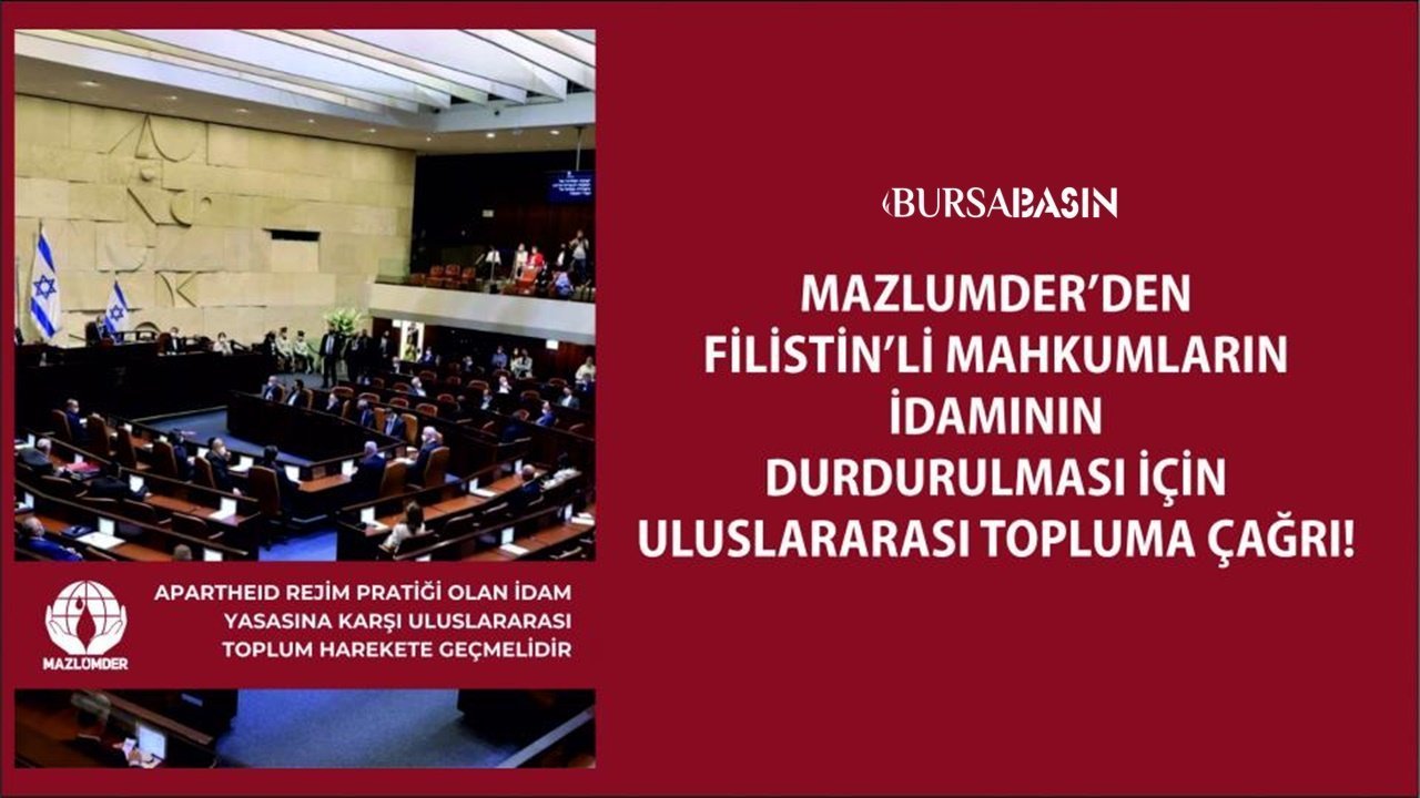 İnsan Hakları ve Mazlumlar için Dayanışma Derneği (MAZLUMDER), İsrail parlamentosu Knesset’te kabul edilen ve yalnızca Filistinli esirleri kapsayan idam cezası yasa tasarısına sert tepki gösterdi.